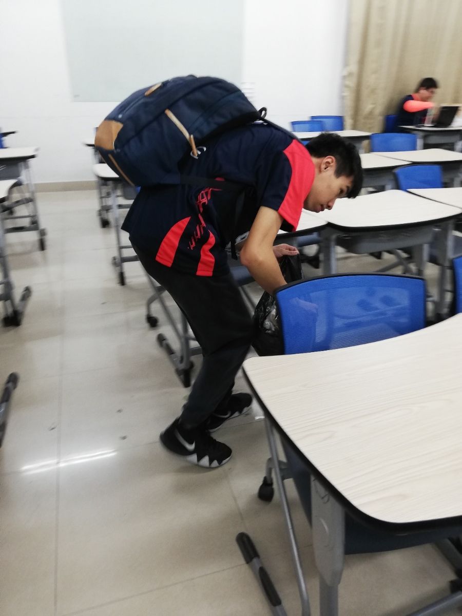 无论是午休时间,还是晚课结束的休息时间,同学们都不辞辛劳,认真工作,翻遍每一个抽屉,每一个人的垃圾口袋都是“满载而归”,甚至有的同学要了第二个第二个垃圾口袋的。