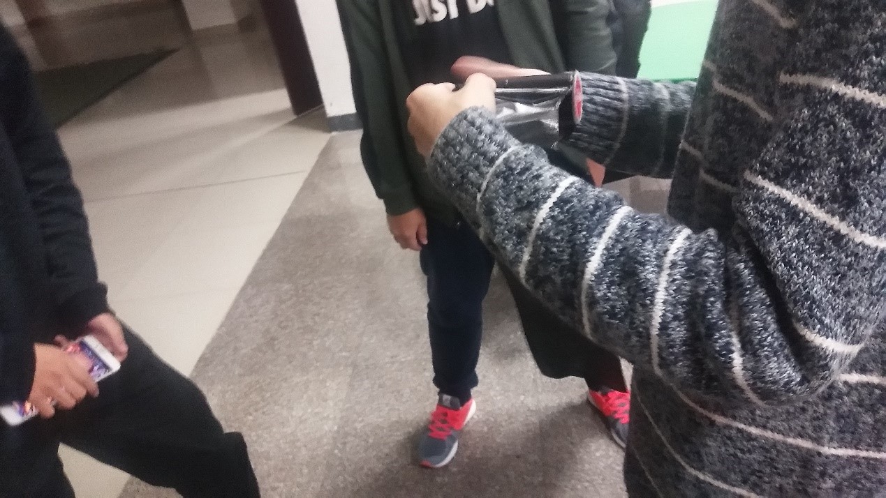 志愿者黄灿鑫在搜查时发现,抽屉里放着没喝完的奶茶,捡拾过后吸管戳破了垃圾口袋,奶茶滴在教室地面上留下长长的印记,最终找到了保洁阿姨,在保洁阿姨的的帮助下拿到了拖把将污渍清理干净。志愿者说,如果是同学第二天来上课,把书包放进去就得弄脏整个书包了。