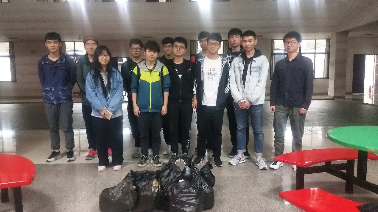活动前,班长对整栋楼大小教室进行了统计,共计大教室16间,小教室11间。总计参加实践活动人数32人,每天分配16人对各个教室进行保洁,垃圾口袋统一发放。同学们的主要任务是搜查抽屉里的残余垃圾,如有文具则放到教室讲桌上。