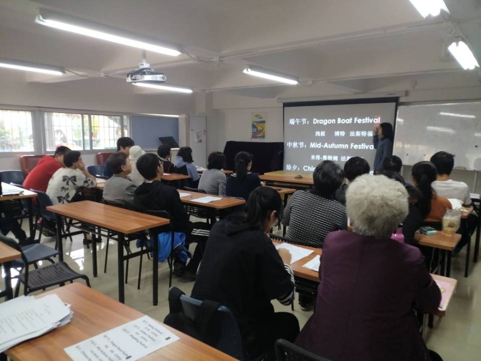最后一堂英语课由青协和其他各学生会人员进行教授。志愿者们提前来到教室,主讲人准备好ppt,对投影设备进行调试并分发纸质版的授课内容,其余的志愿者坐好熟悉材料,等待长辈的到来。上课之前,志愿者与身边的长辈进行亲切的交流,并带领他们复习上节课的内容。正式开始上课,主讲人对ppt的内容进行详细的讲解,每一个单词短语都会反复领读,循序渐进,并鼓励老人们开口跟读,师生配合默契,课堂气氛十分融洽。上半节课结束后,老人普遍反映这种授课方式学得更快,收获更多。