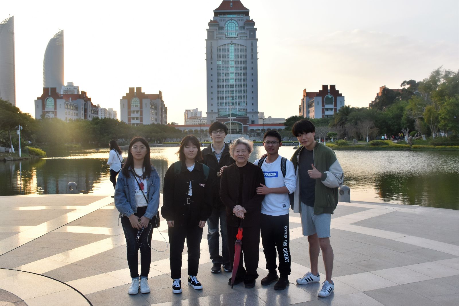 活动最后,志愿者们陪着林老师一起到芙蓉湖畔散步。散步期间林老师还与志愿者们说到许多关于厦门大学的历史故事,让同学们对我们学校有了更深入的了解。