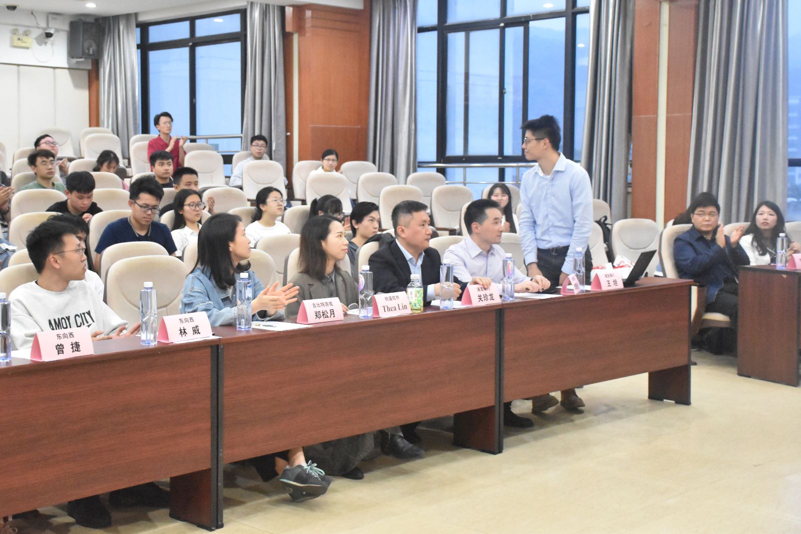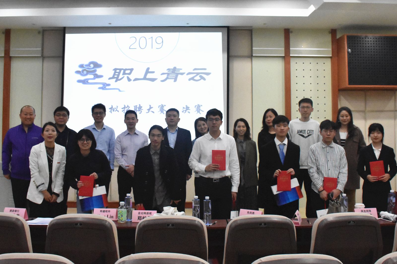 4月14晚,厦门大学软件学院第七届“职上青云”模拟招聘大赛决赛在海韵教学楼504如期举行。担任本次决赛的评委有铃盛软件有限公司的Talent Acquisition Thea Lin女士,吉比特网络技术股份有限公司HR郑松月女士,浦发银行总行开发服务中心处长李霁伦先生,厦门分行信息科技部总经理关珍龙先生,项目经理王坦先生,网龙网络科技有限公司的校园招聘经理廖倩女士,东向西网络科技有限公司创始人曾捷女士、产品经理林威先生。厦门大学软件学院党委副书记史亮、团委刘茜老师出席本次活动。