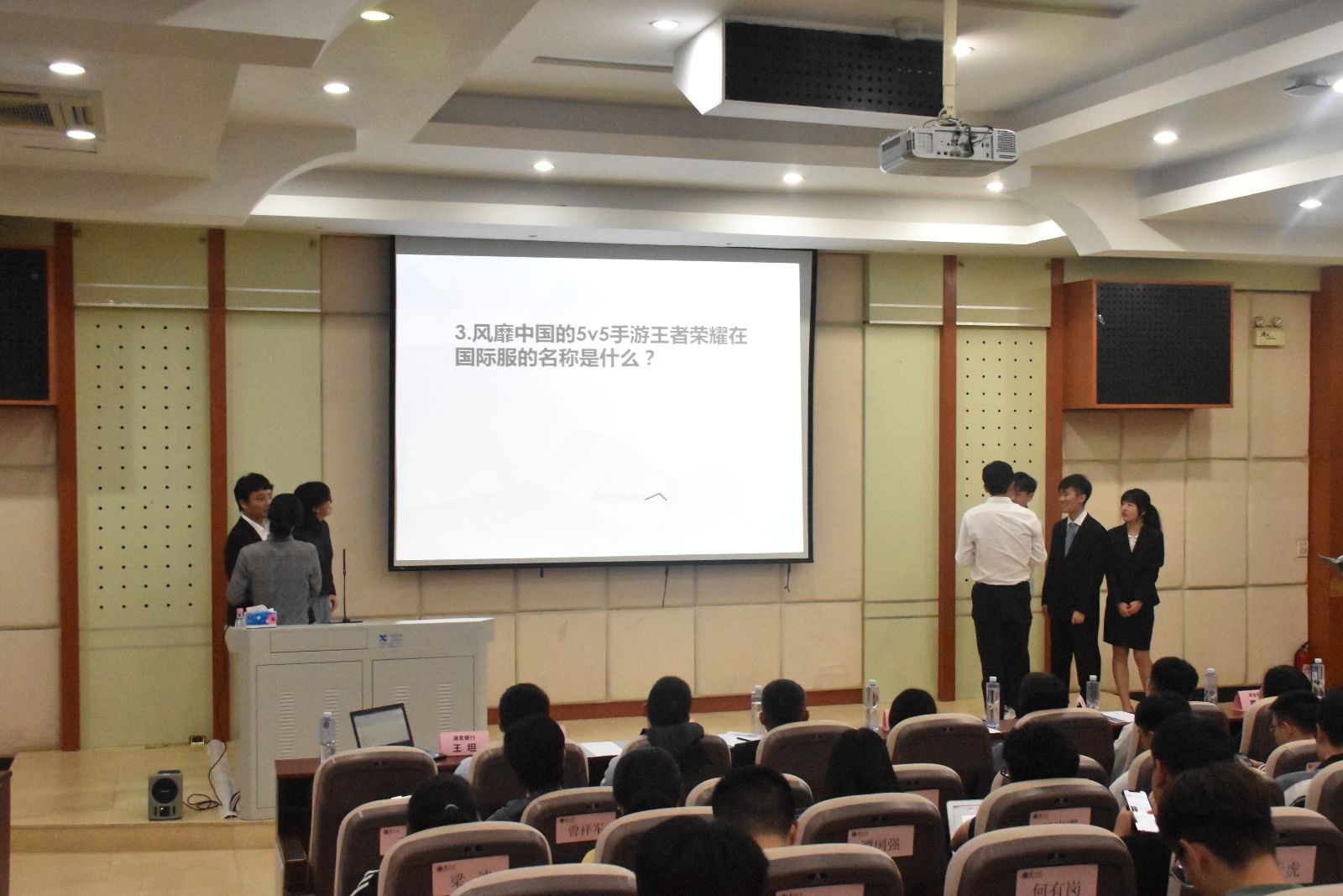 接下来就是紧张刺激的抢答环节,这个环节采用分组竞赛,选手分组抢答十个小问题。这一个环节主要考察选手们的思维反应能力和专业知识的了解程度,选手们专注投入,后援团也很给力,为自己支持的选手加分。所有人都在积极回答问题,现场气氛活跃。