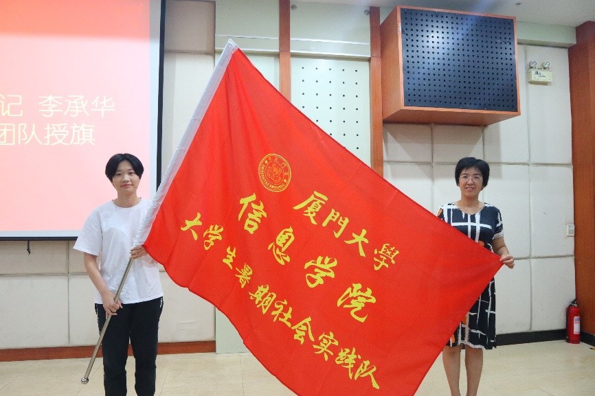 2019年7月15日晚,2019年信息学院暑期社会实践出征仪式在海韵教学楼504室成功举行。学院党委副书记李承华、学院团委书记唐腾凤、团委副书记黄艺明、辅导员陈晨、廖炜以及学院全体实践队员参加出征仪式。