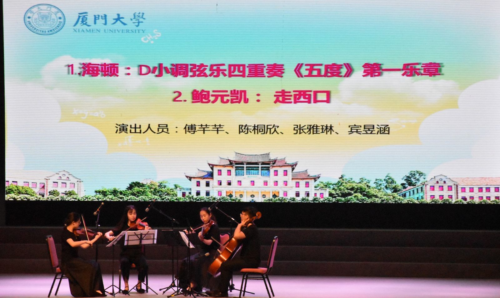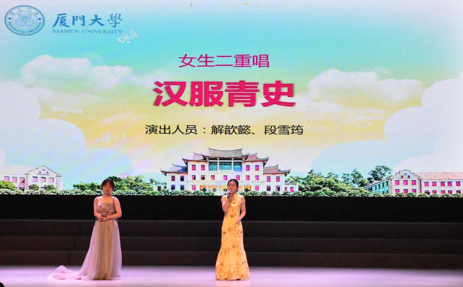 开营仪式以优美的海顿D小调弦乐四重奏《五度》第一乐章和鲍元恺的《走西口》开场,接着又是由两位女生带来的表演二重唱《汉服青史》,歌声时而婉转悠扬,时而引吭高歌,赢得阵阵掌声。