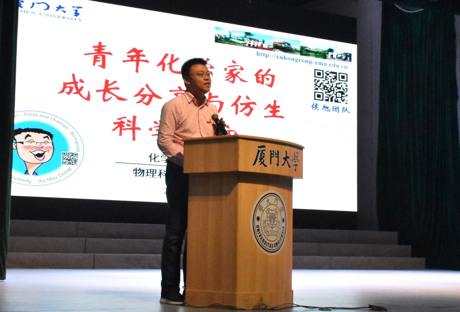颁奖仪式结束后,研究生院副院长兼培养与管理办公室主任余自中老师为开营仪式致辞。然后又邀请到大学生营员代表和高中生营员代表分别发表开营感想。最后由厦门大学化学化工学院的侯旭教授讲述青年科学家与仿生科学的关系。