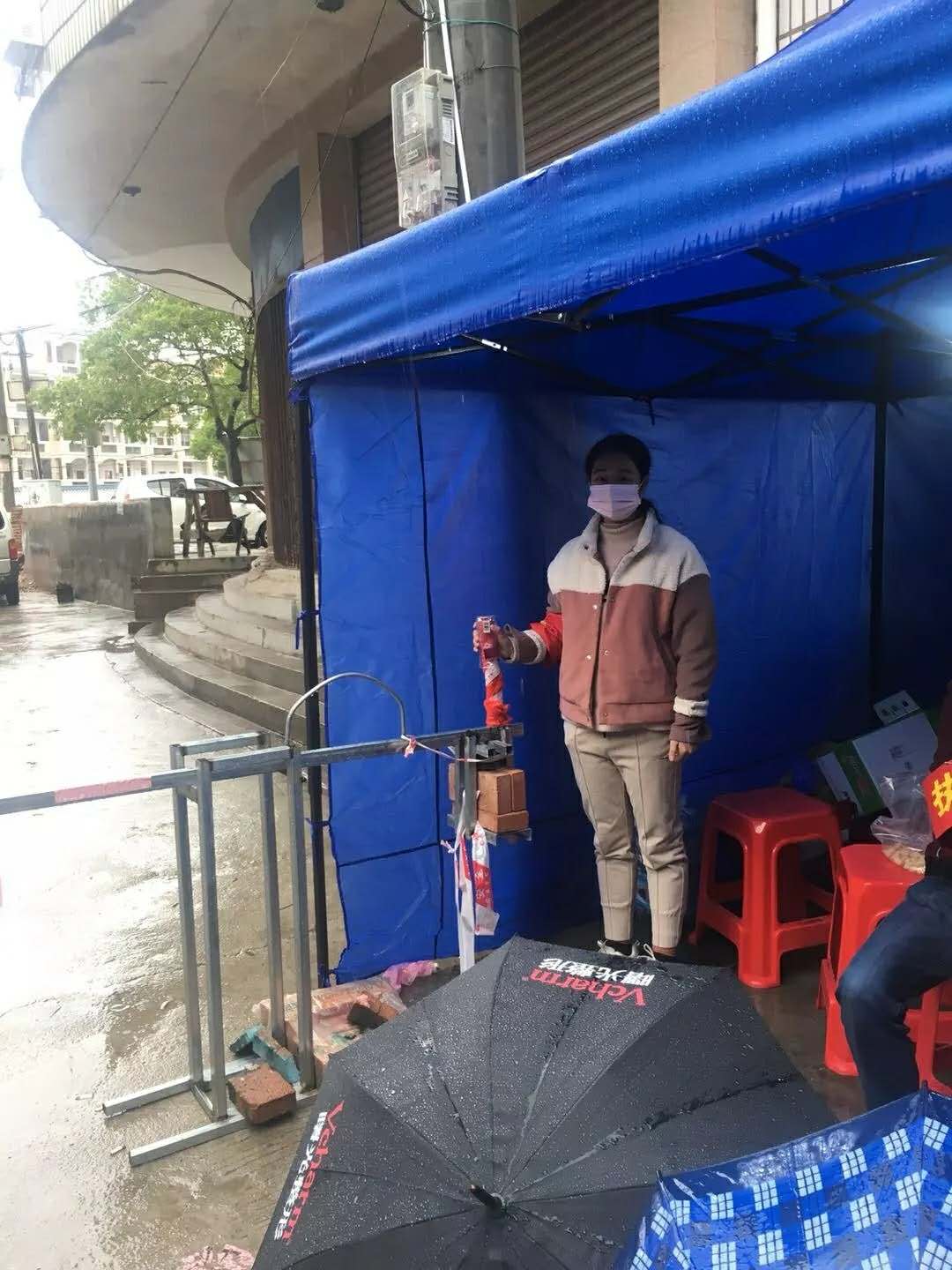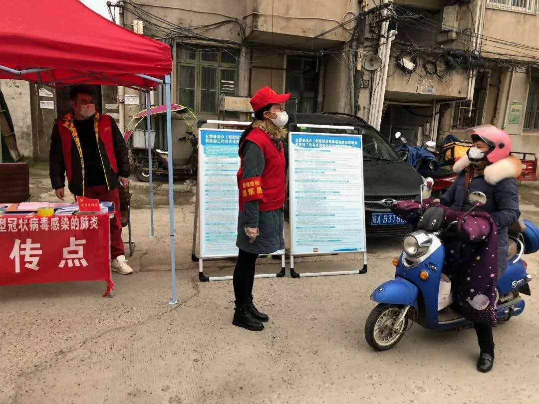 赵筱萱在合肥市庐阳区杏花村街道灵璧社区与社区的其他志愿者们一起呼吁广大居民戴好口罩,减少外出。在社区门口对外来车辆人员进行登记,测量体温。