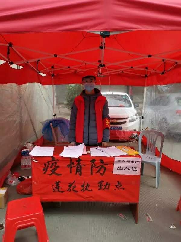 张盛洋参与到福建省龙岩市连城县莲花村地防疫工作,主要在执勤点参与查证件、量体温等工作。