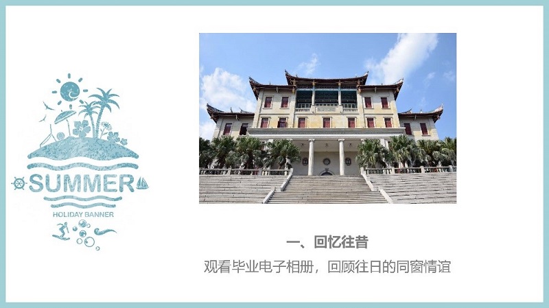 首先在“回忆往昔”环节中,组织同学们观看了提前剪辑好的班级电子相册,在背景音乐的烘托下,学生心中的美好回忆也被唤起,为下面的主题做好了情感铺垫。