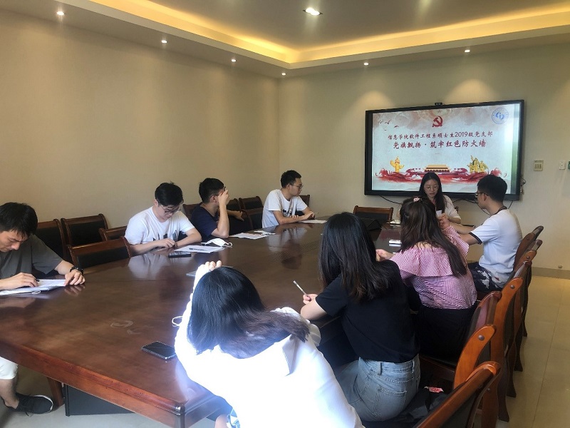 为深入落实贯彻党中央关于常态化疫情防控的决策部署,充分发挥高校基层党组织战斗堡垒作用和师生党员先锋模范作用,6月23日中午,软件工程系硕士生2019级党支部于海韵行政楼C501组织全体党员开展了“党旗飘扬筑牢红色防火墙”高校党组织战“疫”示范微党课的学习心得交流会。支部全体党员参加会议,辅导员蔡婧蓉老师出席本次会议。