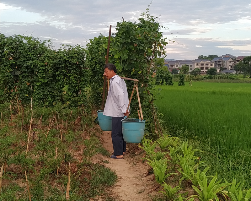 闲下来,慢下来的乡村时光会在坠满枝头的青色果实,青翠散布的田埂,浇灌洒开的水滴中绽放出诗意。重复的除草浇水,这样的农活是枯燥的,但是富于生机的田野和充满希望的土地却给人以希冀和力量。