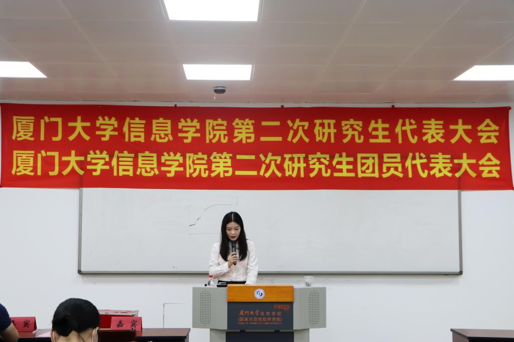 2020年9月4日,厦门大学信息学院第二次研究生代表大会在海韵园行政楼A201顺利召开,出席此次大会的有院党委副书记龙坚毅,院团委副书记黄艺明,辅导员蔡婧蓉,信息学院第一届研究生会委员,其他院系研究生会委员代表和全院各系各年级的学生代表等。