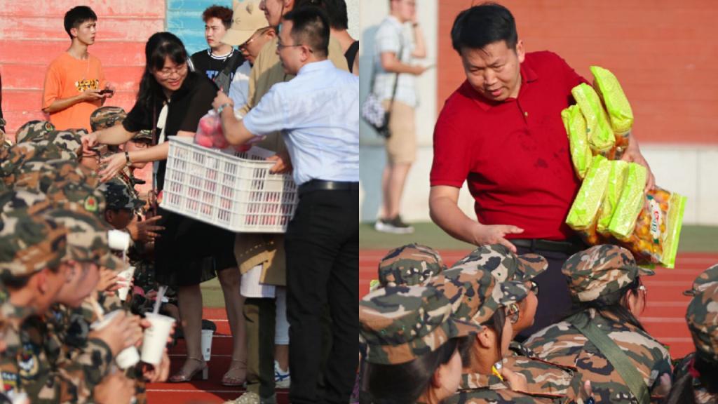 在演出的过程中,学院的老师和学生工作人员为参训的新生们发放慰问物品,许多2020级同学也在现场表达了自己的感动和对学院的感谢。演出结束之后,参与活动的四百多名师生也共同拍摄了大合照,相信也会成为在场每个人内心难忘的回忆。
