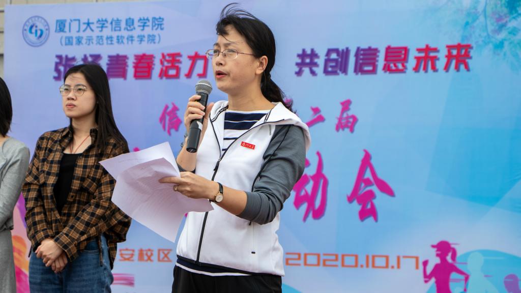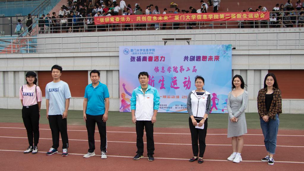 10月17日,厦门大学信息学院第二届新生运动会在翔安校区一期运动场举办。学院党委副书记郑镇锋老师、团委书记唐腾凤老师、本科生辅导员以及2020级全体本科新生出席了开幕式。开幕式由2019级本科生申奥怡主持。