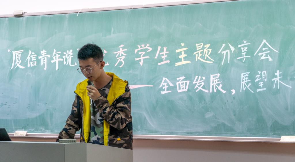 12月3日下午,厦门大学信息学院于翔安校区学武楼A306举办了“全面发展,展望未来”优秀学生分享会。本次分享会由退役大学生士兵2020级本科生赵阳同学、创业青年2019级硕士研究生刘佳桐同学、前院学生会主席2017级本科生何幕同学主讲,由2020级本科生马永欣同学主持。