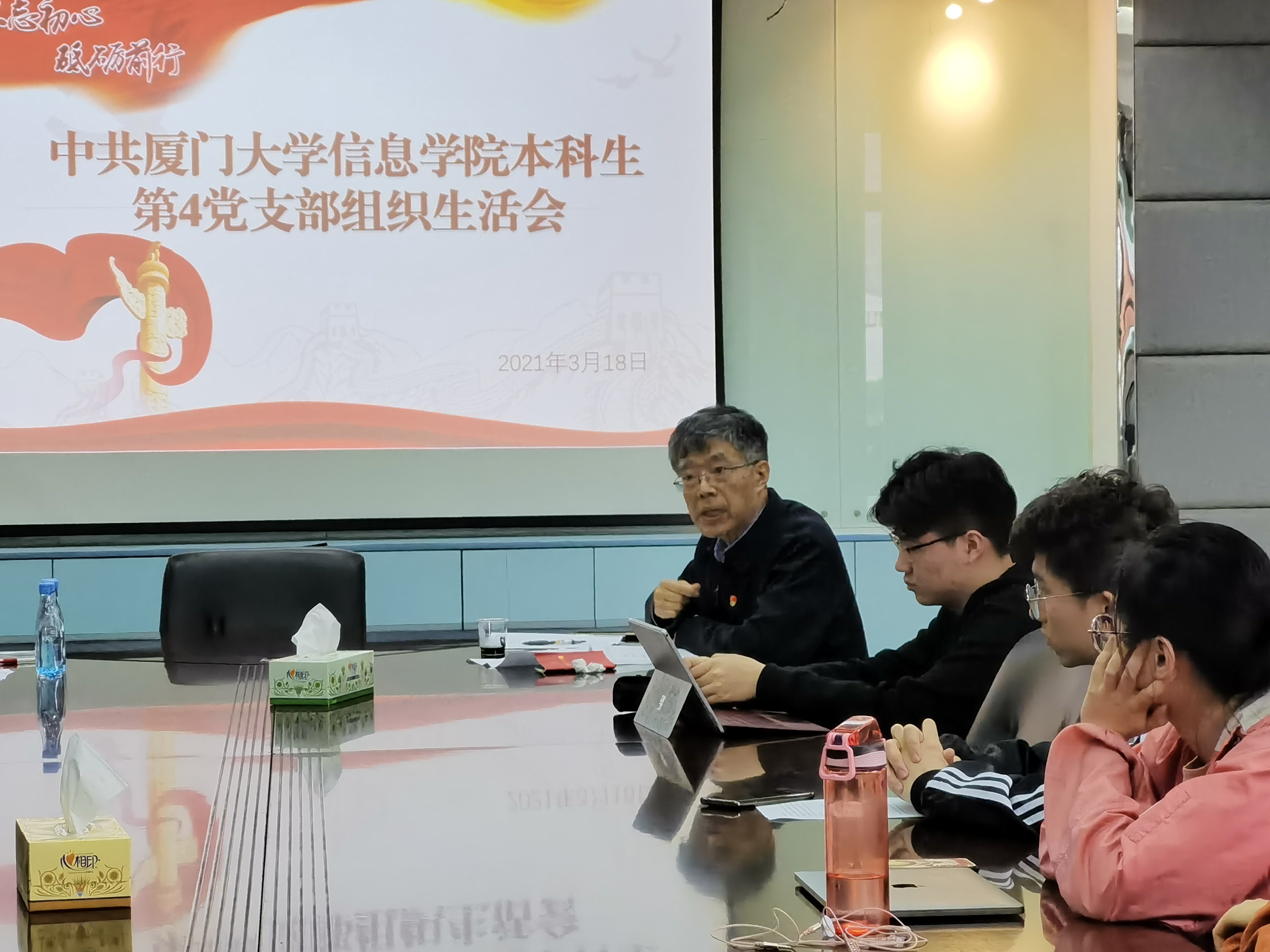 3月18日下午三点,中共厦门大学信息学院本科生第4党支部组织生活会在海韵行政楼A306顺利举办。与会人员有信息学院工会主席杨蔷主席以及中共厦门大学信息学院本科生第4党支部全体党员。活动由支部书记易恩亚同志主持。