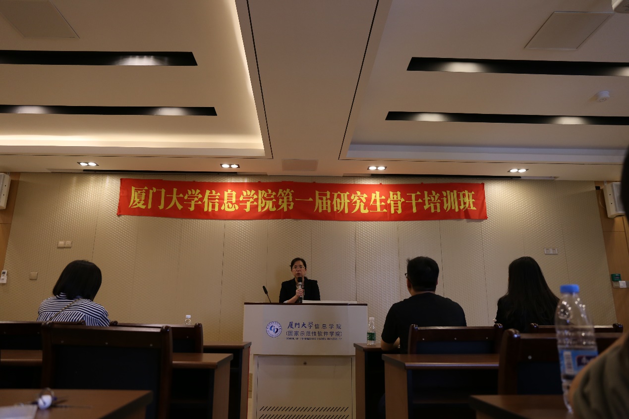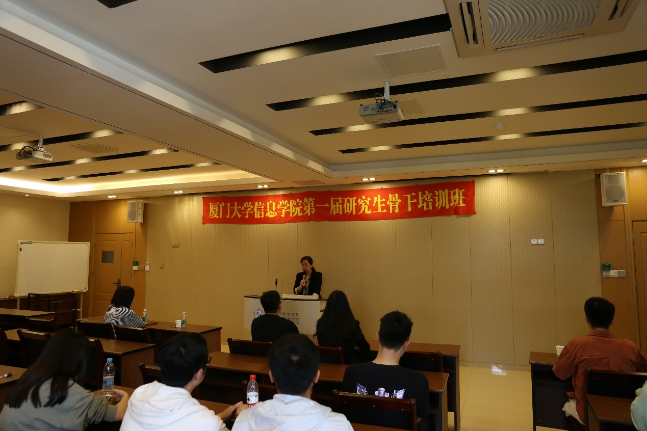 弘扬嘉庚精神,传承百年荣光,信息学院于4月20日中午13:00在海韵行政楼C505举行第一届研究生骨干培训班的开班仪式,院党委副书记龙坚毅老师,团委副书记黄艺明老师、辅导员蔡婧蓉老师、易恩亚老师出席本次开班仪式。
