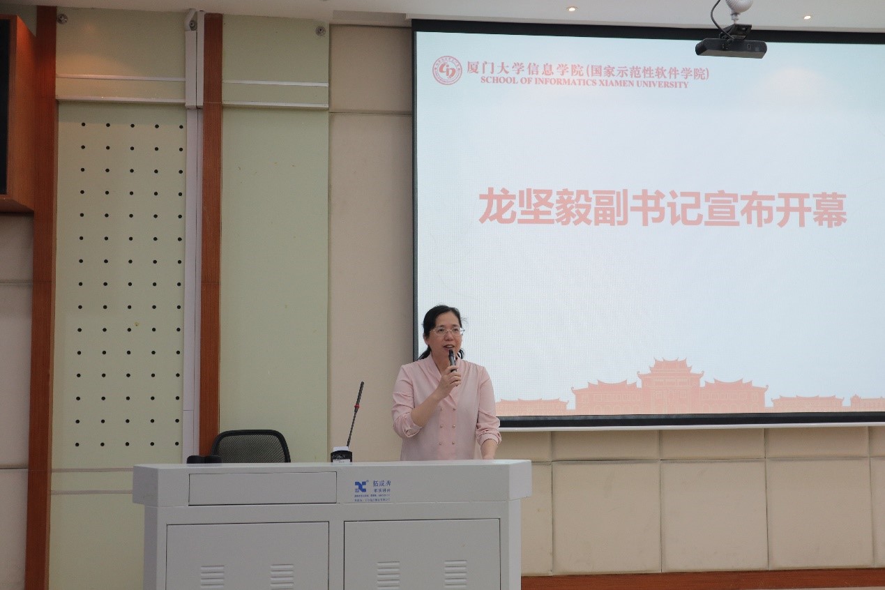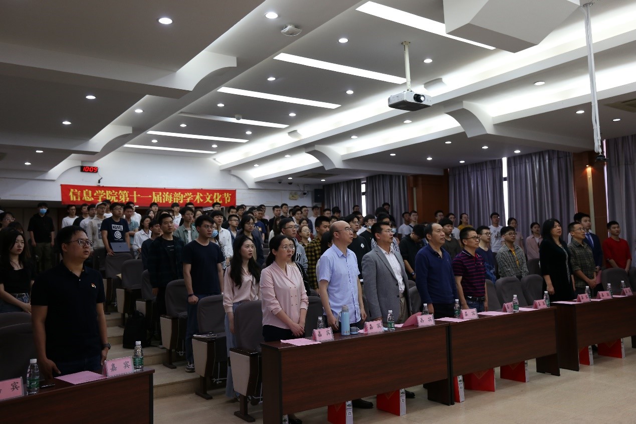 2021年4月28日上午10:00,由厦门大学信息学院、京信通信系统(中国)有限公司、数字福建物联网通信和体系架构安全技术实验室主办,厦门大学信息学院研究生会、研究生团总支承办的第十一届海韵学术文化节开幕式暨名师讲坛首场讲座于海韵教学楼504报告厅隆重举行。信息学院副院长姚俊峰,院党委副书记龙坚毅,人工智能系主任史晓东,计算机科学与技术系主任王菡子,软件工程系主任杨律青,信息与通信工程系副主任袁飞、教授黄联芬,院团委副书记刘茜、黄艺明,辅导员蔡婧蓉、易恩亚出席了本次开幕式。