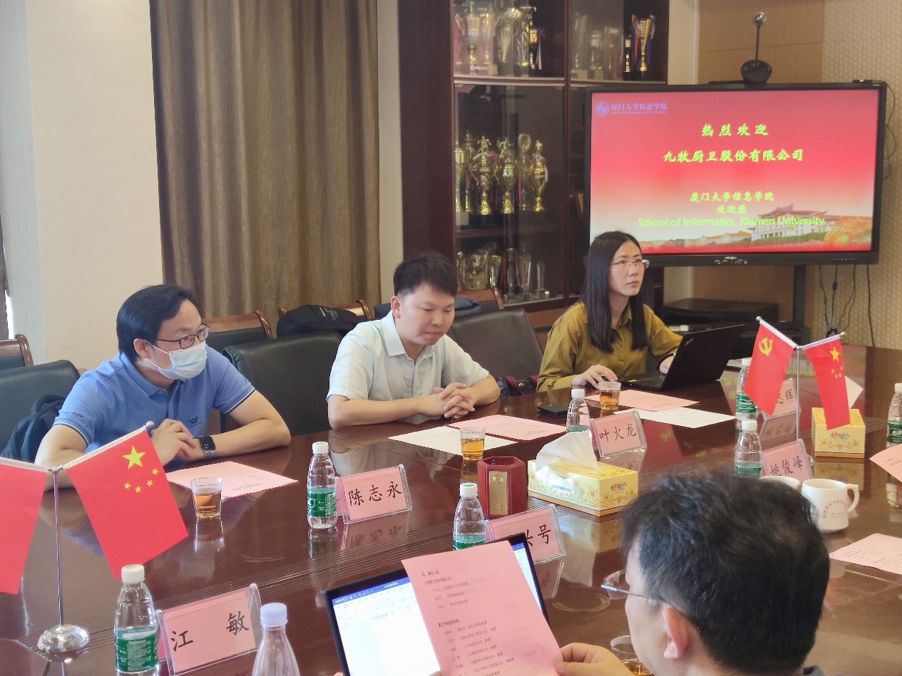 5月11日上午,信息学院“人工智能赋能企业”系列活动之走进领军企业九牧厨卫股份有限公司在厦门大学海韵校区行政楼C610会议室成功举办。九牧一行三人到访我院。我院副院长姚俊峰教授、各系班子成员及其他教师代表参与了此次座谈。