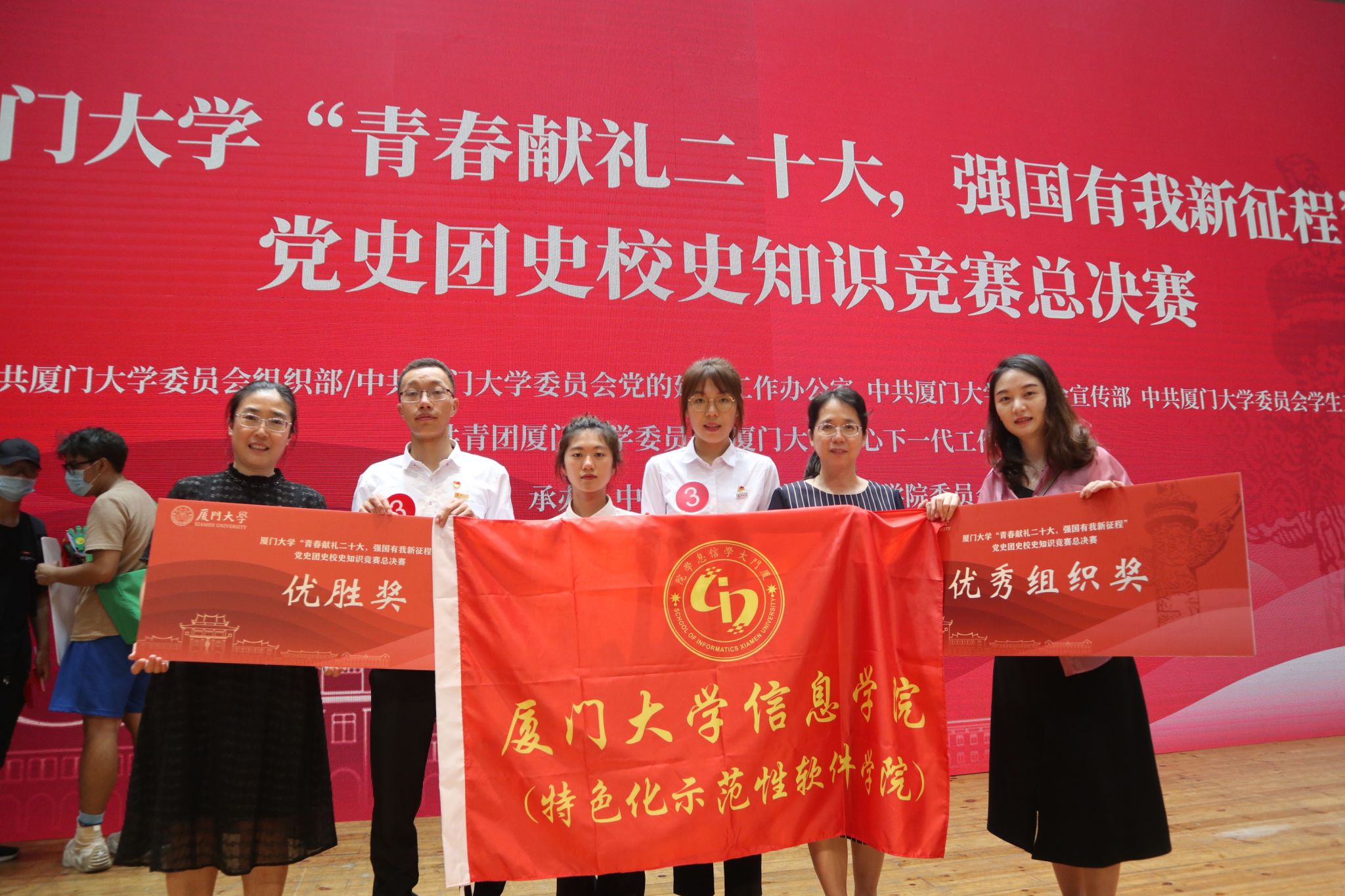 5月29日晚,厦门大学“青春献礼二十大,强国有我新征程”党史团史校史知识竞赛总决赛于思明校区科艺二楼音乐厅成功举办,经过个人选拔赛和院际晋级赛的角逐比拼,全校共十支队伍闯入了校级争霸赛。由来自信息学院信息与通信工程系2021级硕士研究生党支部和本科生第4党支部的陈顺、许以晴、黄婧组成的“知史强信”队一路披荆斩棘,最终在总决赛中获优胜奖,学院获优秀组织奖。