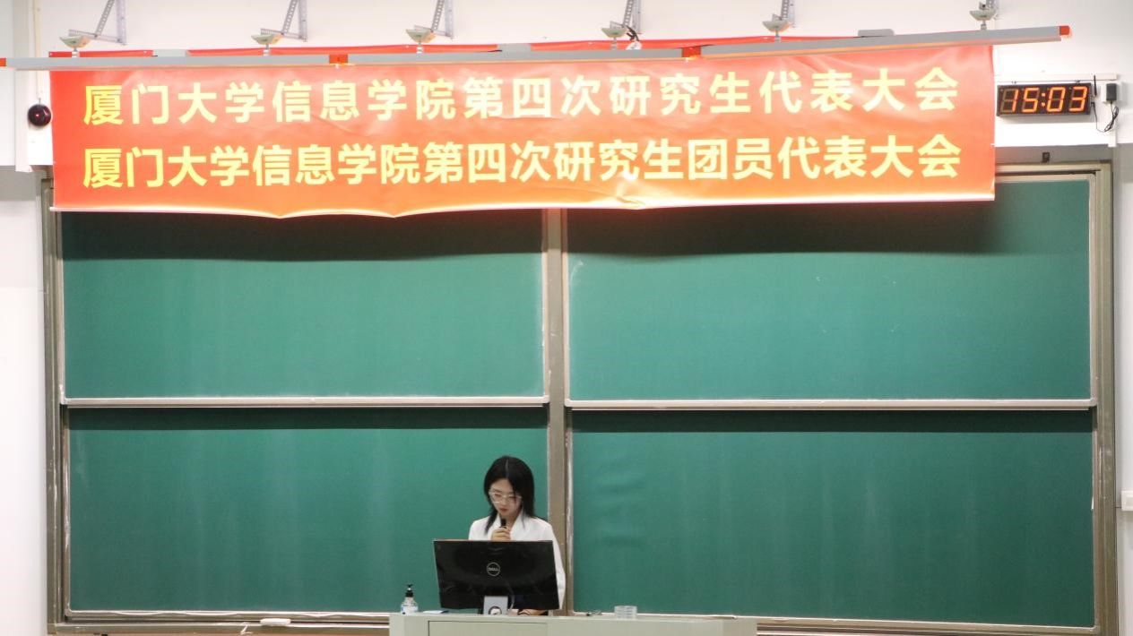 厦门大学信息学院第四次研究生代表大会暨第四次研究生团员代表大会于2022年7月12日在翔安校区学武楼C201成功召开。院党委副书记龙坚毅,辅导员熊剑龙、黄艺明、易恩亚、詹旺平、刘艳婷,学院第三届研究生会委员、其他学院研究生会委员代表和全院各系各年级的学生代表出席此次会议。会议由主席团成员梁浩主持。