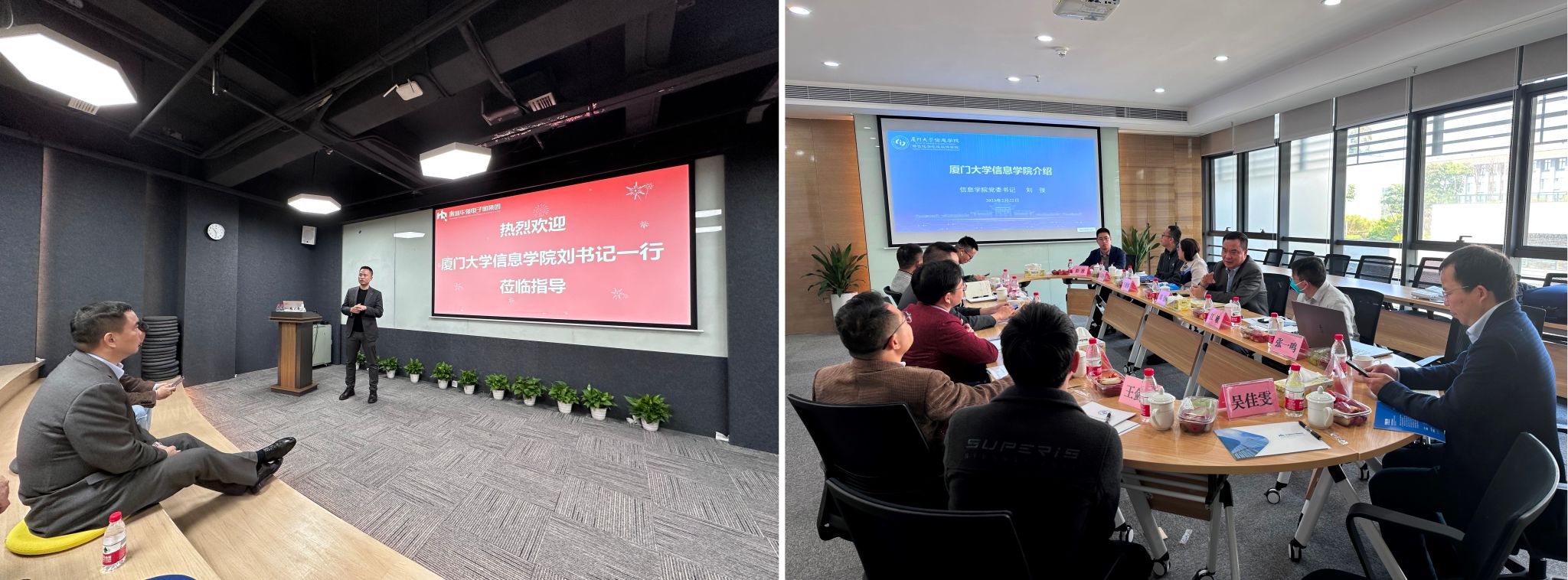 深圳华强电子网集团股份有限公司是一家面向电子元器件垂直产业链的产业互联网B2B综合服务商,致力于打造世界级的电子元器件产业互联网平台。公司创始人、集团总经理、厦门大学1996级计算机校友谢智全介绍了企业的基本情况和未来的发展方向。刘弢一行和华强电子网集团领导及前来参加的校友们进行了座谈交流,结合国家发展、学院发展需求,就深化产教融合、助力毕业生就业进行交流。