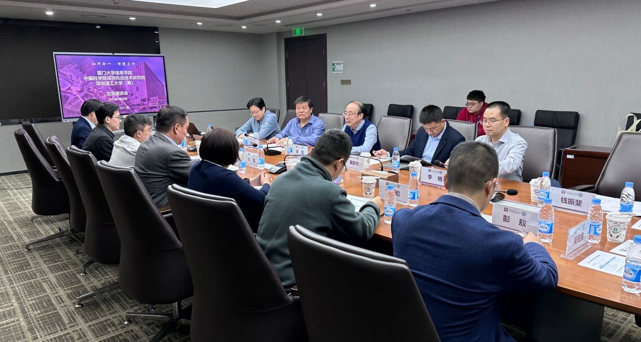 在中科院深圳先进技术研究院,刘弢一行在展厅聆听学生事务处处长李明作院情介绍,参观了实验室。座谈交流中,深圳先进院计算机科学与控制工程学院院长潘毅教授介绍了学院的发展和未来规划,双方就发展学生培养、科研合作等展开讨论,期待能进一步开展实质合作。