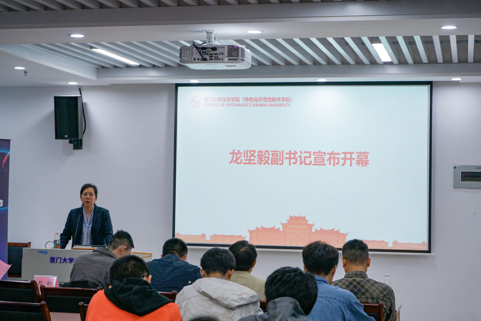 4月26日下午,信息学院第十三届海韵学术文化节开幕式暨名师讲坛首场讲座在正信楼1号楼108举行。副院长袁飞、学院党委副书记龙坚毅、信息与通信工程系教授王琳、计算机科学与技术系副主任陈中贵、信息学院高级工程师冯超、软件工程系助理教授程轩、团委副书记刘长青、辅导员刘心和、刘艳婷出席活动。开幕式由研究生会学术科创部干事邱永茹主持。