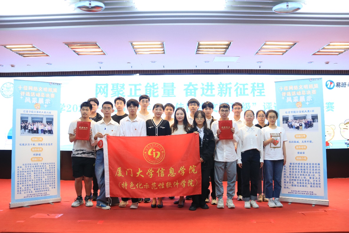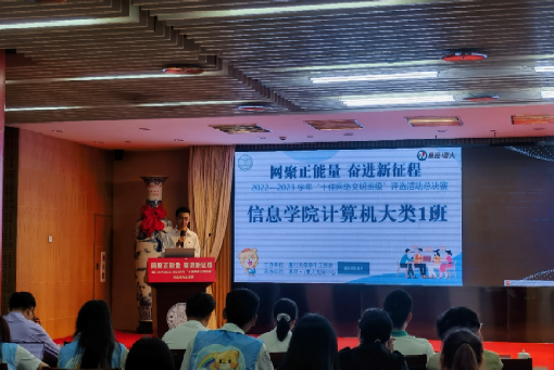 为学习贯彻党的二十大精神,健全网络综合治理体系,持续开展学生网络素养提升计划,多渠道、全方面展示班级风采,厦门大学党委学生工作部于2022年11月启动了厦门大学2022-2023学年新生“十佳网络文明班级”评选活动。5月7日上午9点,“十佳网络文明班级”决赛于思明校区科学艺术中心多功能厅举行,厦门大学信息学院2022本科生计算机大类一班和计算机大类六班在比赛中脱颖而出,计算机大类一班以总分第二名的好成绩获“十佳网络文明班级”荣誉称号,计算机大类六班获“优秀网络文明班级”荣誉称号,学院团委副书记蔡婧蓉、辅导员何静瑶获“优秀指导老师”荣誉称号。