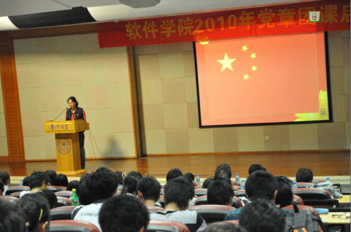 11月9日晚7时,厦门大学软件学院2010年党章团课启动仪式在漳州校区小报告厅正式举行。软件学院党委副书记刘钟南,团委书记郑镇锋,辅导员李加冕、刘锦锗,以及学院团总支学生会各部负责人悉数出席启动仪式。