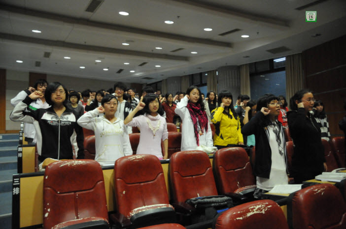 作为本次启动仪式的高潮部分,学院团委书记郑镇锋作了动员讲话。他由“少年智则国智,少年强则国强”谈到共青团的光荣历史和面临的无限机遇与挑战,同时阐述了现阶段国内外形势影响下共青团组织出现的一系列新问题、新情况。他希望广大团员同学能具有责任感及担当意识,积极响应“创先争优”的号召,争取更好地完成历史使命。最后,新生团员代表李博男发言,表达了新生团员上好团课、做好团员的坚定决心。软件学院2010年党章团课启动仪式中国共青团团歌的歌声中圆满结束。