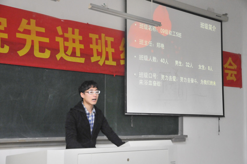 本次大会分为班级展示、评委提问、投票及公开唱票等环节。各班精心准备了发言稿和ppt,甚至制作了视频,以求最好展示一年来班级建设的成果。09级5班向大家介绍了班委分组管理、宿舍才艺大比拼、建立校区空教室查询系统等特色活动;09级2班着力介绍了本班在创先争优、发展党员活动中的表现;09级数字媒体艺术专业2班在展示中强调本班的优良学风和依托专业特色的班级形象设计活动;09级1班则突出班级中同学之间的深厚情谊以及在软件设计方面和学术论文发表方面的良好成就;10级6班由三名学生代表娓娓道出班级里的温馨和成就,独特而富有感染力;10级1班的展示幽默而不乏细节,展示出“终极1班、雄霸一零”的魅力;10级2班突出本班学术沙龙、期末复习小贴士、心理健康教育等品牌活动和在学术竞赛中的丰硕成果,博得阵阵掌声。