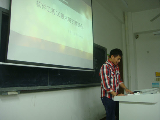 2012年11月2日,软件工程10级本科6班在海韵208教室召开主题班会,“分享”是此次班会的主题。班主任杨宝容和辅导员李加冕出席主题班会。会上6班的同学们进行了丰富多彩的分享讲座。