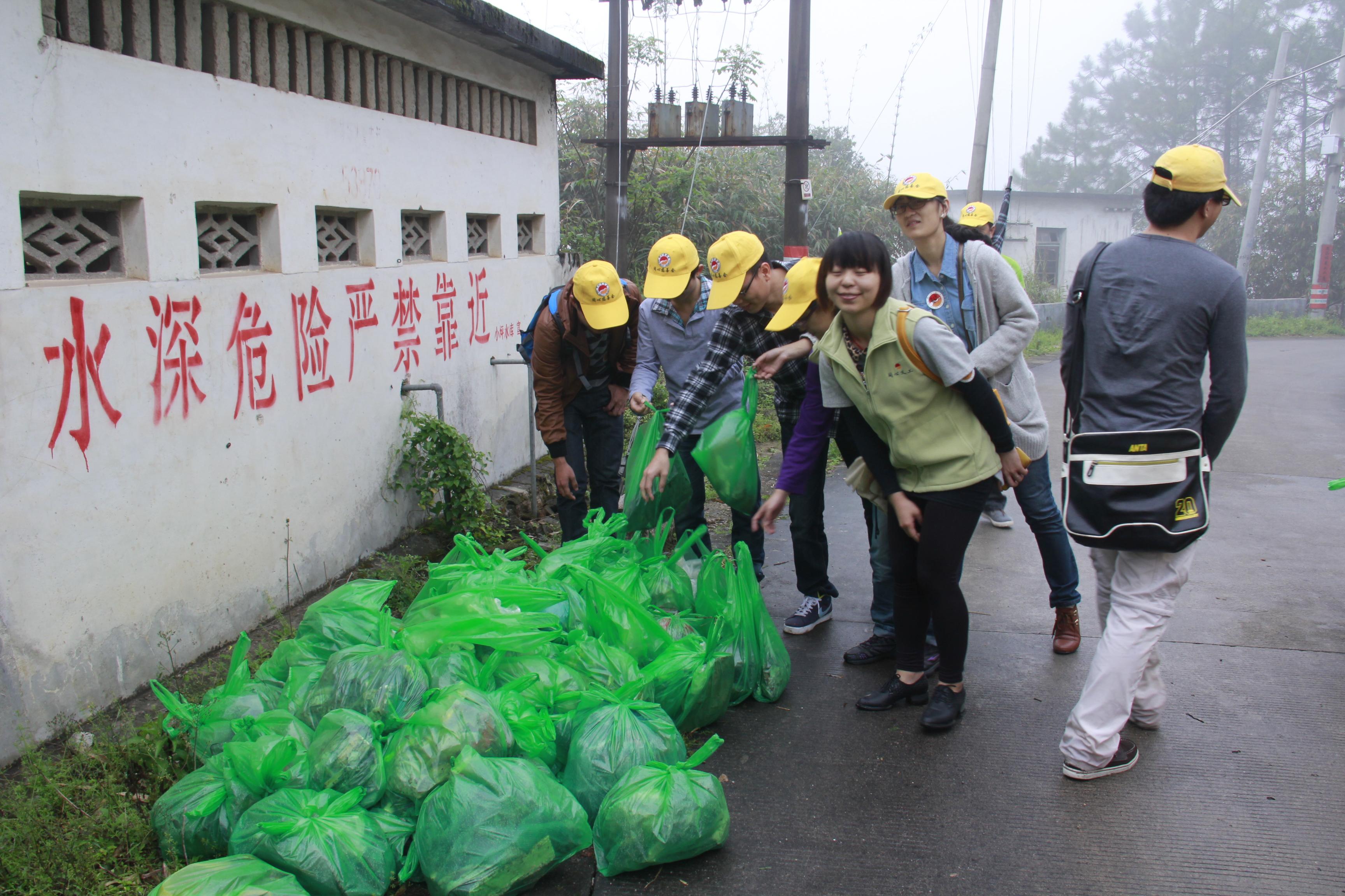拿出塑料袋,带上手套,再次强调安全后,同学们就开始沿着山路捡拾垃圾。沿路有不少烟头、废纸,还有很多半埋在地里还未降解的塑料制品。队伍缓慢地前进着,双眼像探照灯一样在地上搜索着垃圾。一路上,在清理垃圾的同时,同学们也呼吸着山中带着水汽的新鲜空气,欣赏着水库周围的绮丽风光,身心都得到了极大的放松。