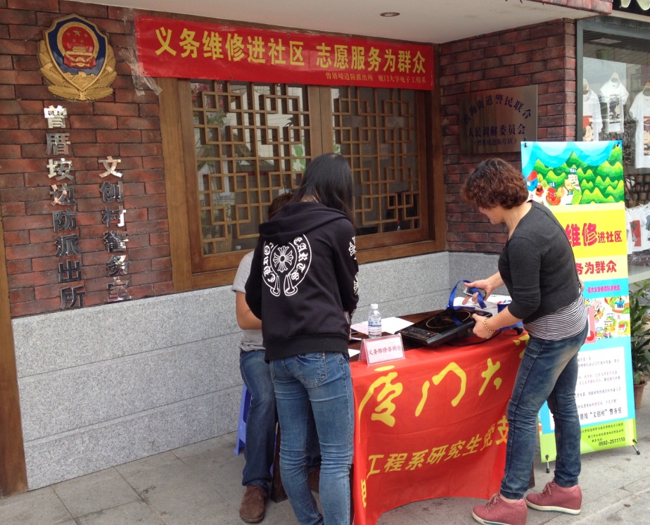 五一佳节期间,厦门大学信息学院电子工程系2012级研究生第1、第2党支部和曾厝垵边防派出所党支部再度联手出击,在风景旖旎的曾厝垵社区开展了又一次义务维修活动,给炎炎夏日带来了阵阵凉意。