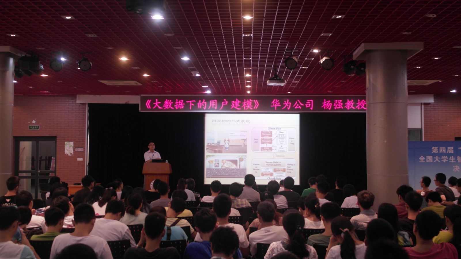 7月27日晚8点,华为公司首席科学家、诺亚方舟实验室主任、香港科技大学计算机与工程系教授的杨强教授在我校自钦楼二楼多功能厅作了题为《大数据下的用户模型》的学术讲座。参与讲座的除了我校学生,还有来自全国22所高校的即将参加7月28日第四届“华为杯”全国大学生智能设计竞赛决赛的参赛选手。现场座无虚席,可见同学们对此次讲座内容的巨大兴趣和饱满热情。