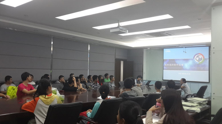 2014年11月6日晚19点,软件学院“我和我的软件故事”第十三期活动在软件学院行政楼A306会议室举办,辅导员李加冕参加了活动。