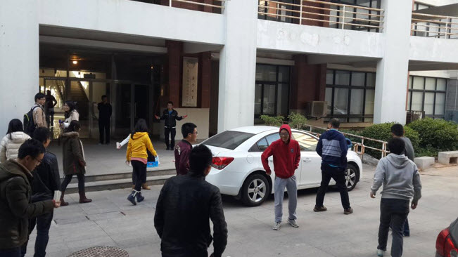 12月17日下午4点,在海韵教学园科研一号楼前,“动起来程序猿”第一次活动正式开始,近30位软件学院的师生参加了活动。