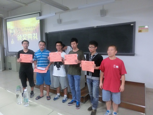 下午5时,在线答题时间截止,比赛正式结束。现场工作人员清理考场,并迅速检题统计出获奖情况。参赛选手休息20分钟后,主持人宣布本次竞赛的获奖选手名单。此次比赛评奖只包含本校学生,外校参赛选手均获得参赛证明以及小礼品。获得非专业组一等奖的是游江坤同学,获得二等奖的是文英鹏同学,获得三等奖的是李媛媛同学。获得专业组一等奖的是陈剑峰同学,获得二等奖的是卢烜、王志豪、陈亦弘、郑川岚同学,获得三等奖的是李与超、包安达、王若宇、乐璨宇、刘常健、陈艺勇、申宏运、潘佳兴同学。决赛还对表现优异的选手进行评选,确定了十名优胜选手和一名优秀女选手。本次比赛在热烈的掌声中圆满落幕。