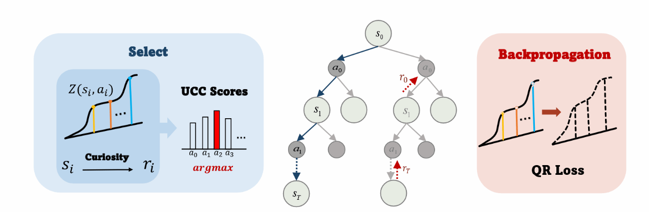 简介:针对大语言模型在不确定性环境下难以实现稳健规划这一关键难题,论文了提出PlanU方法—— 一种基于大语言模型的规划框架,其核心是在蒙特卡洛树搜索(Monte Carlo Tree Search, MCTS)中融入对不确定性的建模。其技术核心包括两个部分:值分布建模:PlanU 创新地将蒙特卡洛树搜索中各节点的 “收益”(return)建模为 “分位数分布”,通过一组分位数精准表征收益的分布特征,以此更充分地捕捉决策过程中存在的不确定性;好奇心驱动的评估机制:为优化树搜索策略,PlanU 提出 “带好奇心的上置信界”(Upper Confidence Bounds with Curiosity, UCC)评估机制,通过量化评估蒙特卡洛树各节点的好奇心分数,有效缓解 LLM 的不确定性问题,弥补了传统搜索策略在适配 LLM 决策场景时的不足。文章在 WebShop、TravelPlanner 等权威基准测试中验证,PlanU 在大语言模型不确定性决策任务上表现显著优于各类基线方法,且兼具环境适应性、资源效率与跨模型稳健性。