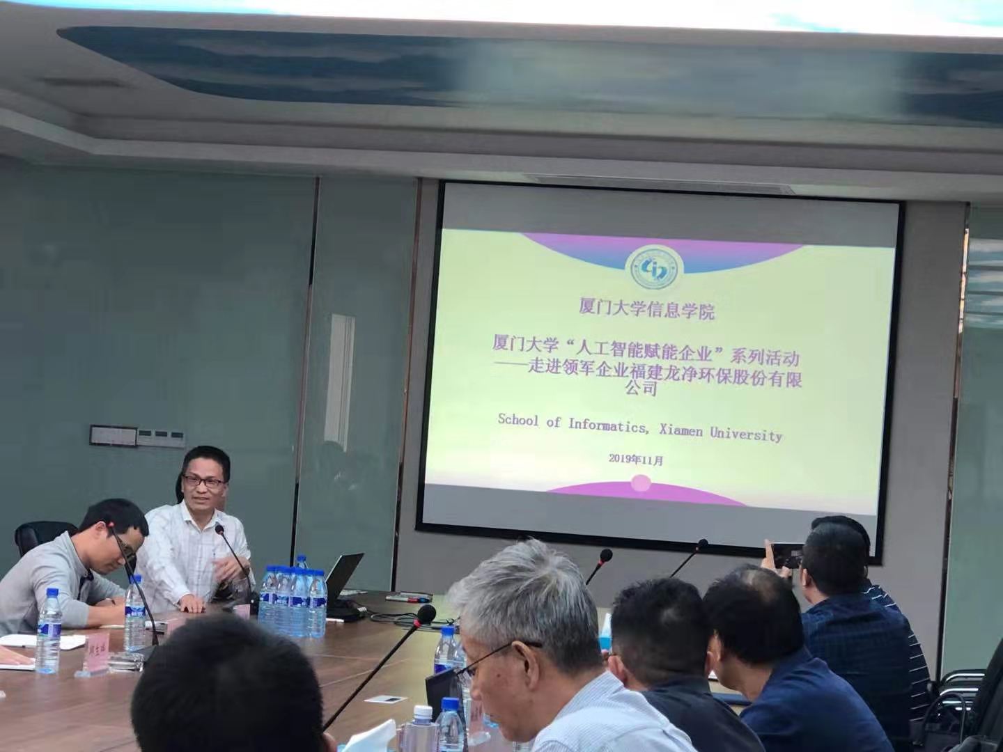 会上,企业领导表示对厦门大学信息学院的来访非常期待。龙净环保是中国环保产业的领军企业和国际知名的大气环保装备制造企业,四十余年来始终专注于环保领域研发及应用,致力于提供生态环境综合治理系列方案,业务涵盖大气污染治理、水污染处理、固废处理、土壤修复。公司在全国环保行业建立了首个“国家级企业技术中心”、拥有“国家地方工程联合研究中心”、“院士专家工作站”、“企业博士后科研工作站”、“国际科技合作基地”等技术创新平台,近年公司先后承担国家和地方多项项目课题,获有效专利665件(其中发明专利143件),获省级以上优秀(重点)新产品认定33项,获国家科技进步奖2项、省(部)市级科技创新奖励83项,综合实力居全国同行之首。