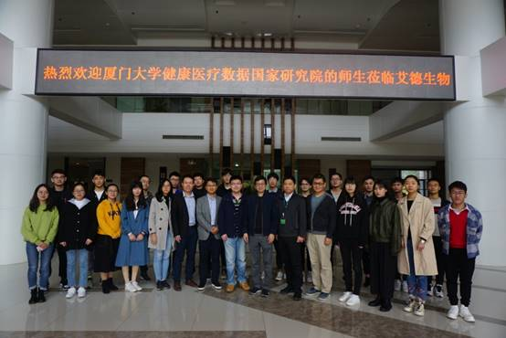 2019年12月21日上午,厦门大学健康医疗大数据国家研究院副院长、信息学院俞容山教授带队,研究院副院长李奇渊教授,研究院导师范晓亮、林世明及研究院学生一行30余人访问厦门艾德生物医药科技股份有限公司。艾德生物公司董事长郑立谋博士,副总经理、董事会秘书罗捷敏博士,生物信息主管李旭超博士出席了活动。
