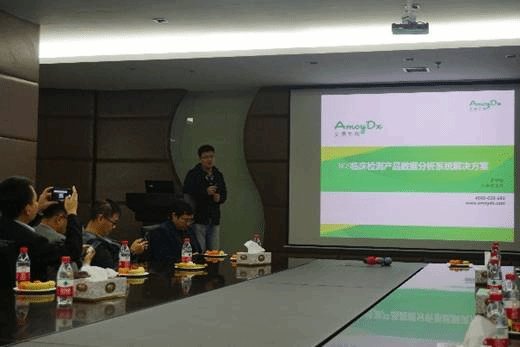 首先,罗捷敏博士带领全体参访师生参观艾德生物总部一楼展厅,他向大家详细介绍了公司概况、发展历程、资质荣誉以及品牌文化。通过介绍和观看展厅琳琅满目的获奖证书、专利以及荣誉榜,大家对艾德生物公司有了较为全面的初步了解。艾德生物集肿瘤精准医疗诊断产品的研发、生产、销售、服务为一体,同时具备三类体外诊断产品生产/经营资质及独立临床医学检验资质。公司获得国内外发明专利授权30余项(核心专利获得中国、美国、欧洲、日本授权),拥有行业内国际先进、完全自主知识产权的ADx-ARMS®、Super-ARMS®、ddCapture®、等技术平台,打破了跨国企业的技术垄断,在短短几年内成长为细分领域优势企业。随后,李旭超博士带领大家参观了艾德生物公司5-6楼的研发实验室。