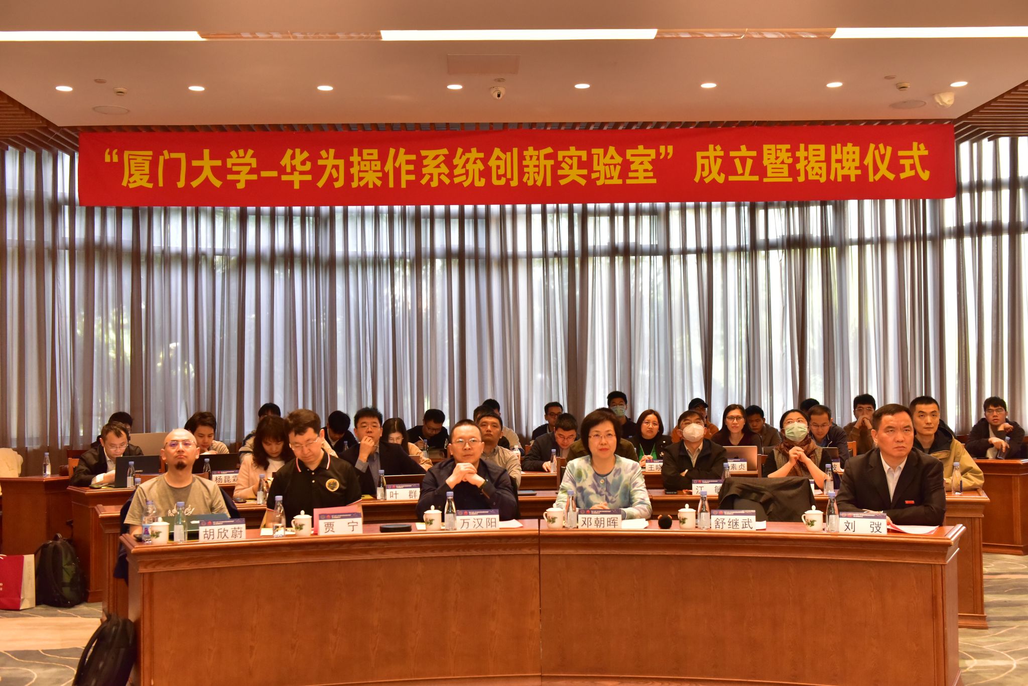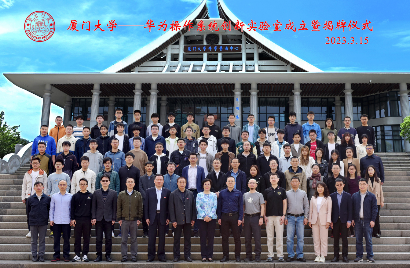 2023年3月15日,“厦门大学—华为操作系统创新实验室”成立暨揭牌仪式在厦门大学科学艺术中心成功举行。厦门大学党委常委、副校长邓朝晖,闽江学院院长、创新实验室主任舒继武,信息学院党委书记刘弢、华为中央软件院欧拉部部长万汉阳、庞加莱实验室主任胡欣蔚、OS内核实验室副主任贾宁等领导和嘉宾出席仪式。本次仪式由刘弢主持。