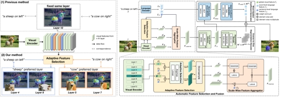 指示性图像分割(RIS)旨在根据文本描述分割图像中的特定区域。现有的单阶段方法已探索了各种融合策略,但它们面临两个重要问题。首先,大多数方法依赖于从视觉编码器层手动选择的视觉特征,缺乏根据语言偏好灵活选择视觉特征的能力。其次,将单词级特征直接融合到粗粒度对齐特征中会破坏已建立的视觉-语言对齐,导致性能不佳。为解决这些问题,本文提出了一种创新的RIS框架,称为自适应选择与双对齐(ASDA)框架。该框架通过自适应对齐视觉和语言特征克服上述挑战。ASDA的创新之处体现在两个方面。首先,本文设计了一个自适应特征选择和融合(AFSF)模块,动态选择与不同文本描述相关的视觉特征。AFSF配备了尺度特征聚合器,提供多层次的粗粒度特征,既保留关键的低级细节,又为后续的双对齐提供强大特征。其次,本文引入了单词引导的双分支对齐器(WGDA),通过单词引导的注意力将粗粒度特征与语言提示融合,解决视觉-语言错位问题,确保语言描述直接与掩码预测作用。这使得模型能够专注于相关的图像区域并进行准确预测。广泛的实验结果表明,本文的ASDA框架在RefCOCO、RefCOCO+和G-Ref基准测试中优于现有最先进的方法。这种改进不仅展示了ASDA在捕捉细粒度视觉细节方面的优势,还表明其在处理多样化描述时的鲁棒性和适应性。