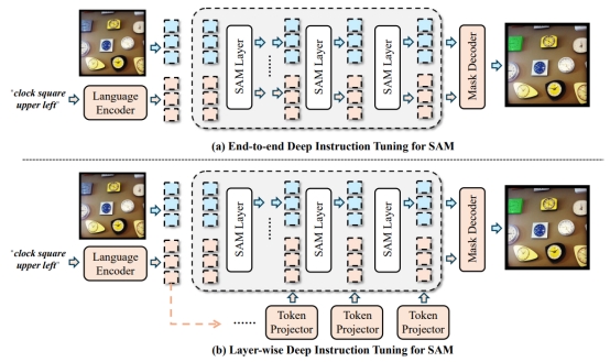 Segment Anything Model(SAM)已成为多媒体和计算机视觉领域的研究热点,它在各种(非)条件图像分割任务中表现出强大而通用的能力。尽管 SAM 可以支持不同类型的分割提示,但与基于点和框引导分割相比,它在文本指示任务上的表现要差得多。针对这个问题,本文提出了两种简单而有效的SAM深度指令调优(DIT)方法,一种是end-to-end的,另一种是layer-wise的。本文认为深度文本指令调优是缓解其默认轻量级掩模解码器中浅层融合方案引起的这种缺陷的关键。在几乎不改变SAM主体结构下,DIT 就可以直接将 SAM 的图像编码器转换为独立的视觉语言学习器,而不是构建额外的深度融合分支,从而最大限度地发挥其卓越的分割能力。在三个极具竞争力的RIS基准数据集上的广泛实验表明,简单的end-to-end DIT可以大幅提高SAM性能,而layer-wise DIT可以进一步将性能提高到最先进的水平。