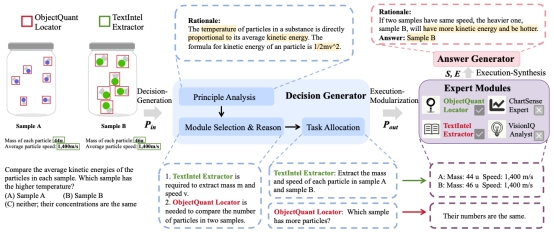 现有的多模态思维链方法通常将问题分解为多个相关的子任务,并调用各种外部工具依次处理。然而,由于视觉信息不足和低级感知工具的局限性,这种范式在决策时面临潜在的“决策幻觉”,以及低级感知工具无法提供高级推理信息的挑战。为此,本文提出了一种创新的多模态CoT框架,称为Cantor,其特征是感知决策架构。Cantor首先利用MLLM或LLM扮演决策生成器,通过整合视觉输入来分析图像和问题,确保上下文信息对齐。此外,Cantor利用MLLM的高级认知功能,使其扮演多个不同的专家来获取更高层次的认知信息,增强CoT生成过程。在无需额外训练的情况下,Cantor在两个复杂的视觉推理数据集ScienceQA 和MathVista上显著提高了CoT性能,证明了有效性。