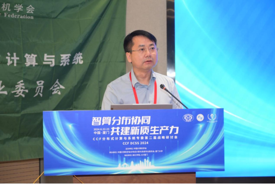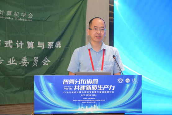 2024年6月22日至23日,中国计算机学会(CCF)分布式计算与系统专委第二届战略研讨会(CCF DCSS 2024)在厦门大学成功举办。本次会议由中国计算机学会主办,分布式计算与系统专业委员会、厦门大学承办,闽江学院、CCF厦门协办。会议以“智算分布协同,共建新质生产力”为主题,南京大学陈贵海教授担任大会主席,南京大学田臣教授和厦门大学张一鸣教授担任副主席,厦门大学副校长尤延铖、厦门大学信息学院党委书记刘弢、厦门大学信息学院副院长张俊松、专委会主任国防科技大学郭得科教授,国防科技大学苏金树教授、上海交通大学过敏意教授、清华大学/闽江学院舒继武教授、清华大学徐明伟教授、中山大学肖侬教授、湖南大学谢鲲教授、阿里云网络研究负责人翟恩南博士等120余位专家学者和企业代表参会。会议包含6场特邀报告以及1场圆桌论坛,共同探讨新质生产力的提升、算力基础设施的建设以及算力互联互通在新兴应用领域的关键技术。开幕式由大会主席陈贵海主持。