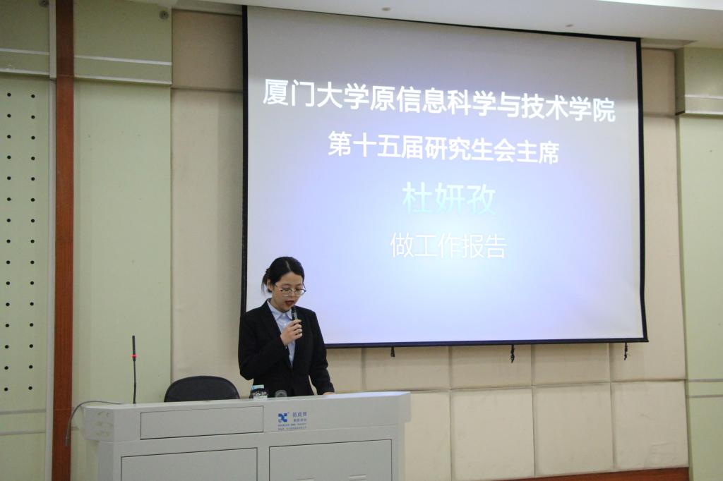 2019年12月6日,厦门大学信息学院在海韵园教学楼504召开了信息学院的第一次研究生代表大会。出席此次大会的有院党委副书记杨蔷,院团委副书记黄艺明,辅导员蔡婧蓉,原信息科学与技术学院第十五届研究生会委员,原软件学院第九届研究生会委员,其他院系研究生会委员代表和全院各系各年级的学生代表等。