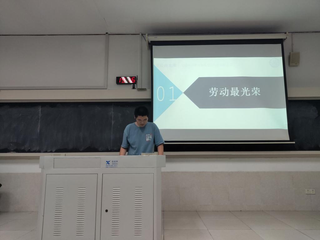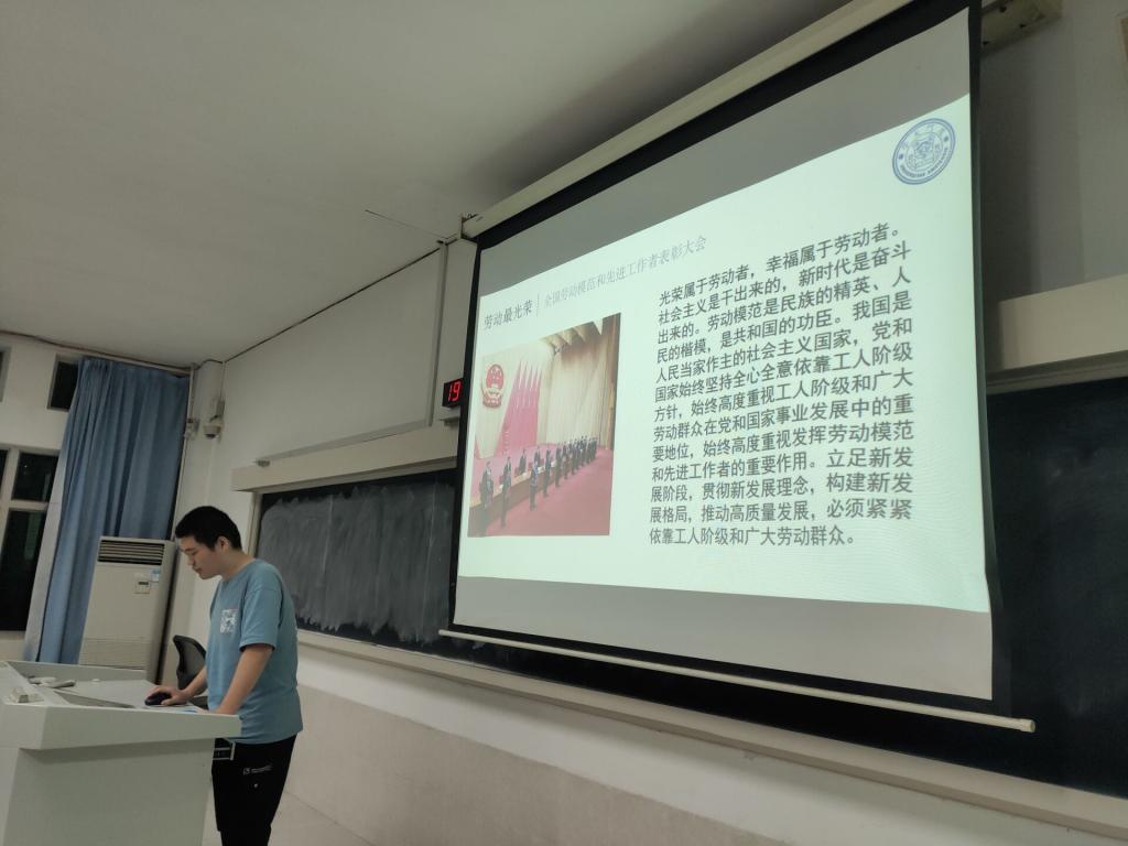本次“弘扬劳动精神,引领时代新风”主题团课从“劳动最光荣”、“咱们工人有力量”和“弘扬劳动精神倡议”三个主题展开。“劳动最光荣”部分,徐诚同学向同学们介绍了全国劳动模范和先进工作者表彰大会的相关内容,并详细地讲解了劳动与社会主义的关系和新时代下劳动的重要意义。随后的“咱们工人有力量”部分则向大家讲述了工人阶级在党的领导下取得的成果、奋斗的产物和奋斗的作用。最后的“弘扬劳动精神倡议”部分积极地传达了当今时代对劳动者的欢迎与支持,并号召大家积极弘扬劳动精神,向劳动模范和先进工作者学习。
